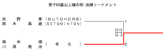 | ¼‘º º—m ‹Œˆä ŽÀ (Šò‘åBC) | ~ 15-17 15-13 12-15 | @ | ~ 10-15 9-15 | › 15-10 15- 9 | ‚R |