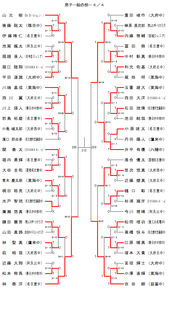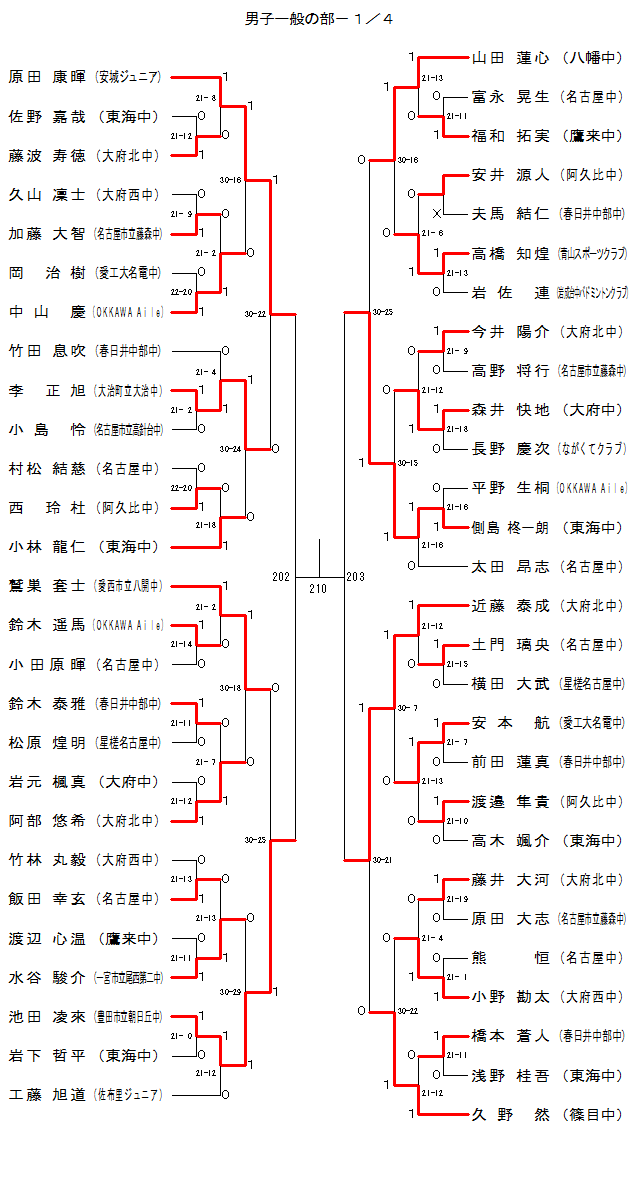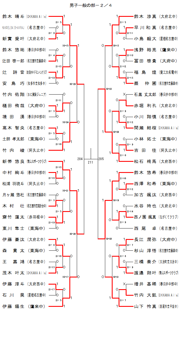 | MSB-21 | ‘å•{–k’† | “¡ˆä ‘å‰Í | ‚P | 21-19 | ‚O | Œ´“c ‘åŽu | –¼ŒÃ‰®Žs—§“¡X’† | |