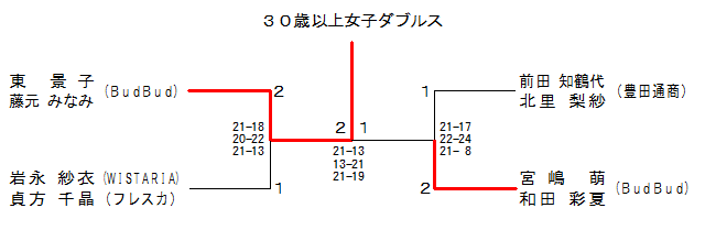 | 30WD-3 | ‚a‚•‚„‚a‚•‚„ | “Œ ŒiŽqE“¡Œ³ ‚Ý‚È‚Ý | ‚Q | 21-13 13-21 21-19 | ‚P | ‹{“ˆ –GE˜a“c Ê‰Ä | ‚a‚•‚„‚a‚•‚„ | |