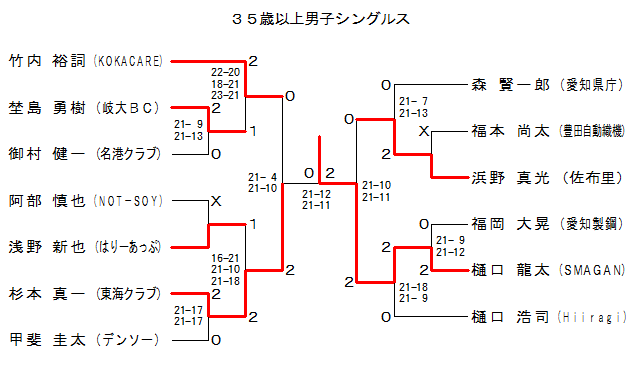 | 35MS-12 | SMAGAN | 樋口 龍太 | 2 | 21-12 21-11 | 0 | 杉本 真一 | 東海C. | |
