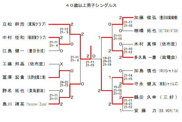 | 40MS-1 | ‰¡{‰êC. | ’†‘º ‰À˜a | ‚Q | 21-11 21- 4 | ‚O | ]“‡ Œ’ˆê | –L“c‡¬ | |