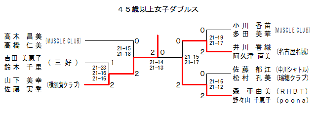 | 45WD-2 | –¼ŒÃ‰®–¼é | ˆäì DEˆ¢‹v’à ’¼”ü | ‚Q | 21-19 21-17 | ‚O | ¬ì •cE‘½“c ”ü‰Ø | ‚l‚t‚r‚b‚k‚d ‚b‚k‚t‚a | |