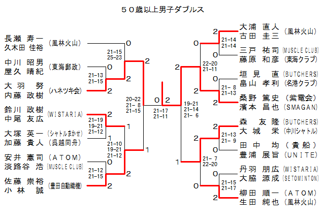 | 50MD-4 | •——щΎR | ‘å‰Y ’¼lEŒÃ“c Œ\ŽO | ‚Q | 21-14 21-14 | ‚O | ŽOŒË —SŽiE“¡Œ´ ˜a•F | MUSCLE CLUB¥“ŒŠCC. | |