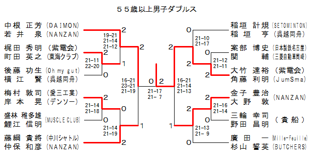 | 55MD-1 | އ“d‰ïE“ŒŠCC. | Š“c G–¾E’¬“c ‰p”V | ‚Q | 21-11 22-20 | ‚O | Œã“¡ Œ÷¶E‰¡] Œ« | Oh my gut¥Œà‰z“¯M | |