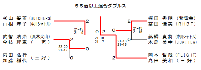 | 55XD-3 | BUTCHERS¥’†ì¼¬ÄÙ | ™ŽR ¾‰pEŽRª —mŽq | ‚Q | 21-15 21- 9 | ‚O | •’q ´Ž¡E¡Ž} —Œb | •——щΎREˆê‹{ | |