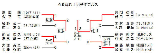 | 65MD-5 | LOVE ALL¥‹³Eˆõ“o˜^ | “’ŠC –QE‹à•½ ŽÀ | ‚Q | 21-17 21-12 | ‚O | û“c r‹vE‹T’Ó ²ˆê | DANDE LION¥—LSŠÙ | |