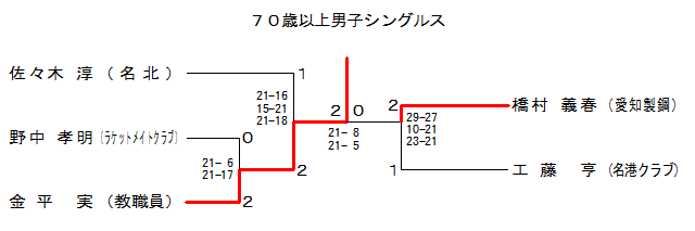 | 70MS-2 | ‹³Eˆõ | ‹à•½ @ŽÀ | ‚Q | 21-16 15-21 21-18 | ‚P | ²X–Ø ~ | –¼–k | |