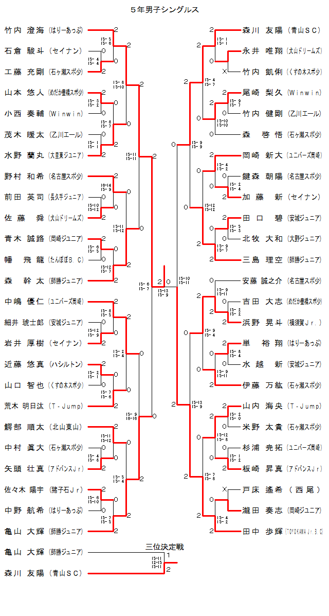 | MS5-34 | TOYOKAWA Jr.B.C | “c’† •à‹P | ‚Q | 15- 4 15- 2 | ‚O | ‘ë“c ‘tŽu | ‰ªèƒWƒ†“ñƒA | |